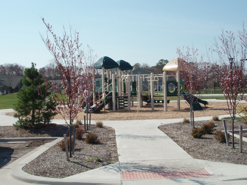 A putting green located adjacent to the tot lot nearest the tennis court.